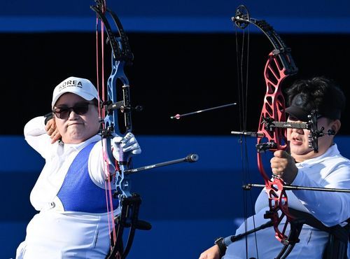 (파리=연합뉴스) 김경윤 기자 = 박홍조(41)와 김옥금(64)이 2024 파리 패럴림픽 양궁 혼성 단체전(스포츠등급 W1)에서 한 발의 실수로 동메달을 놓쳤다.