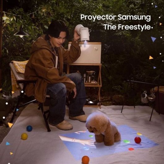 지난달 31일(이하 한국시각) 삼성전자 파라과이 법인은 SNS를 통해 슈가가 등장한 삼성 프로젝터 광고 사진을 게재했다. 공개된 사진 속 슈가는 캠핑을 하며 프로젝터를 사용하고 있는 모습이 담겨 있다.