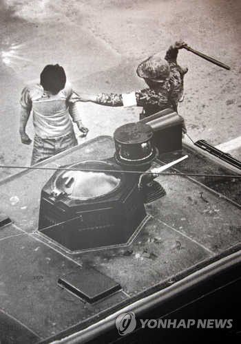 광주민주화운동 당시 금남로에서 곤봉으로 학생을 내리치는 공수부대원 |