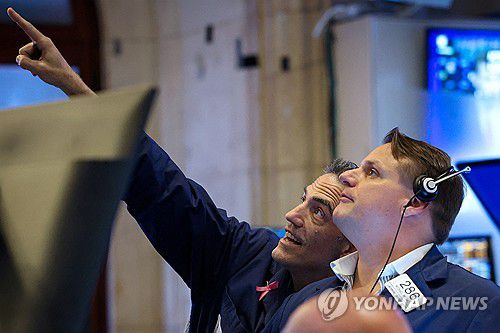뉴욕증권거래소에서 투자자들이 지표를 보는 모습. |