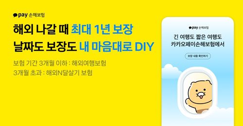 ▲ 카카오페이손해보험은 해외 여행자보험 보장 기간을 기존 1개월에서 최대 1년으로 확대한다고 4일 밝혔다. 이에 따라 사용자는 단기 해외여행뿐만 아니라 유학 및 어학연수, 워킹홀리데이, 해외인턴십·봉사 등 장기 해외 체류 중 발생할 수 있는 사고·질병에 대해 맞춤형으로 보장받을 수 있다. 카카오페이손해보험 해외여행자 보험은 작년 6월 출시 이후 1년 3개월 만에 누적 가입자 수 180만명을 기록했다. (서울=연합뉴스)