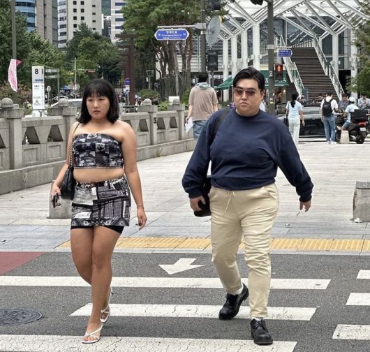 코미디언 이수지와 김규원이 국내 동영상 플랫폼(OTT) 쿠팡플레이 예능물 'SNL 코리아' 시즌6를 통해 미국 로스앤젤레스(LA) 베벌리힐스 거리에서 함께 포착된 BJ과즙세연·방시혁 하이브 의장 모습을 패러디해 화제를 모으기도 했다. 뉴시스 |