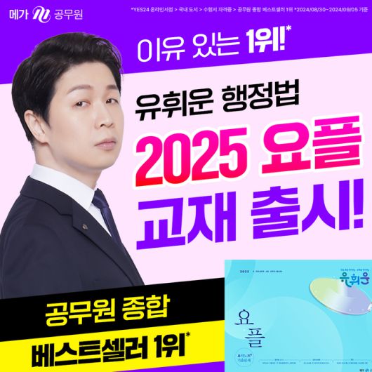 그중에서도 자신의 공부 노하우를 담은 개념과 기출을 결합한 교재 요플이 작년에 이어 올해도 출간 즉시 공무원 종합 베스트셀러 1위를 기록했다(YES24 온라인서점 > 국내 도서 > 수험서 자격증 > 공무원 종합 베스트셀러 1위 *2024/08/30~2024/09/05 기준).