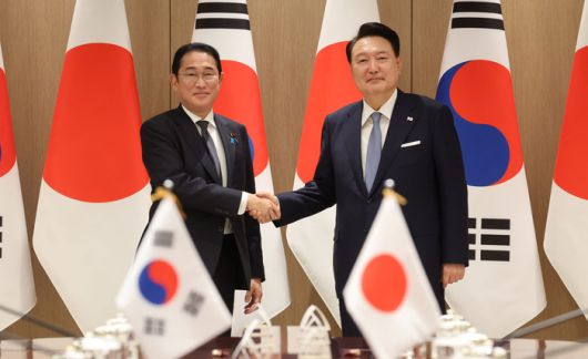 윤석열 대통령과 기시다 후미오 일본 총리는 6일 정상회담에서 양국 간 “어려운 문제들”이 남아있지만 미래지향적인 자세로 협력해야 한다고 밝혔다. 기시다 총리는 과거사 문제에 대해 기존 입장을 재확인했다. 양국은 재외국민보호 협력 각서를 체결하고 출입국 절차를 간소화하기로 했다.
