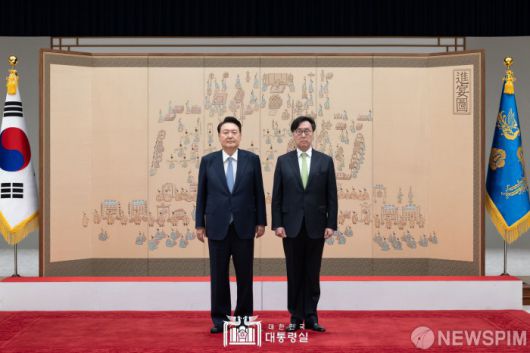 [서울=뉴스핌] 윤석열 대통령이 6일 서울 용산 대통령실에서 장호진 외교안보특별보좌관에게 임명장 수여후 기념촬영을 하고 있다. [사진=대통령실] 2024.09.06 photo@newspim.com 저작권자(c) 글로벌리더의 지름길 종합뉴스통신사 뉴스핌(Newspim), 무단 전재-재배포 금지