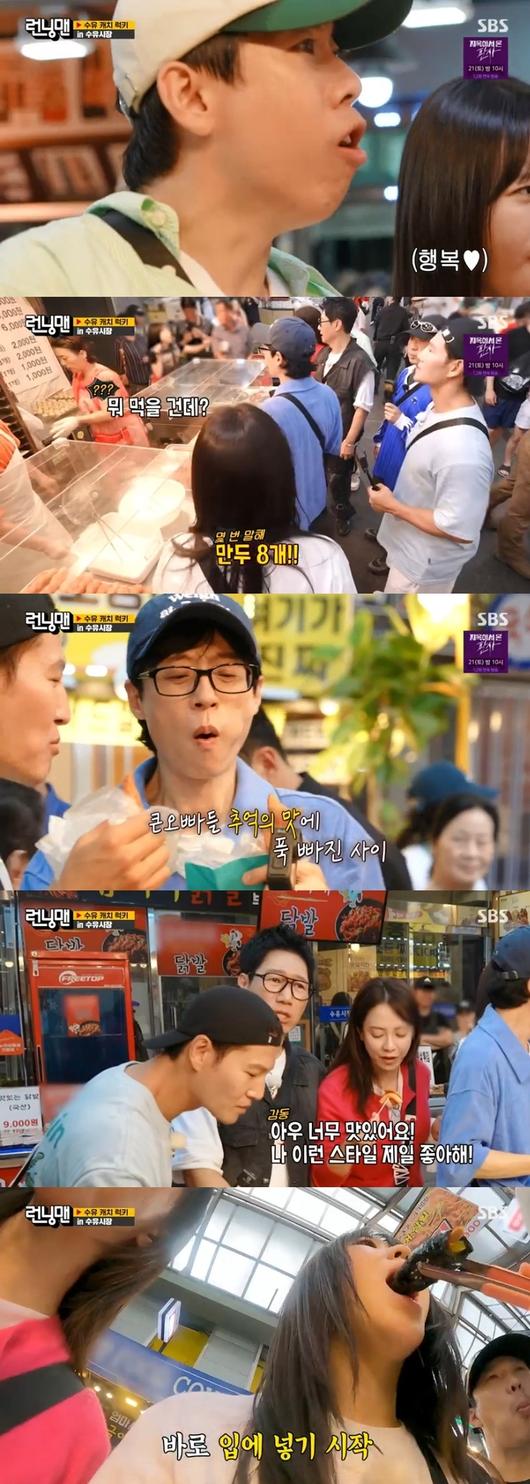 이후 떡볶이와 순대, 꼬마김밥도 흡입했다. 지석진은 “너무 맛있어요! 나 이런 스타일 너무 좋아해요”라며 감탄했고 다른 멤버들도 “순대 맛있다!”라며 식사했다. 훈제 오리고기 비주얼에 김종국은 “운동 끝나고 먹으면 딱 좋겠네~”라며 정신을 못 차렸고 “이거 하나만 사 줘요!”라며 결국 오리고기를 포장했다.