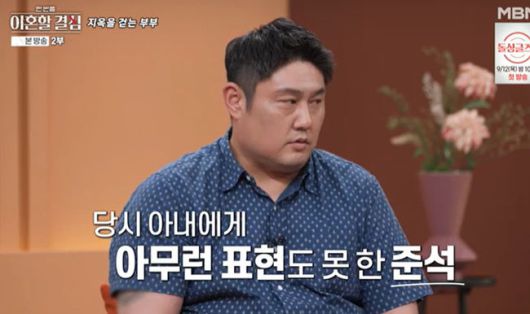 최준석은 “가족을 위해 노력한다고 하는데, 매일 반복되는 아내와의 갈등을 해결하기가 좀처럼 쉽지 않다”고 토로했다. 아내와의 갈등에 힘든 모습. 최준석은 "경제적 스트레스와 아내의 잔소리에 지칠 대로 지쳤다"라고 토로하면서 "싸움이 돌고 돌아 사기사건으로 향해, (항상)죄인이 된 거 같았고, (건물 투자) 사기를 당한 뒤 삶이 고통스러웠다"라고 후회하는 모습을 보였다. 최준석은 "악몽이라 생각, 지옥을 걷고 있는 심정이다"고 덧붙였다.