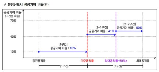 주민 부담을 고려해 ▷1구간(현재용적률~기준용적률) 10% ▷2구간(기준용적률~최대용적률)41%, 50%로 공공기여율을 차등 적용했다.