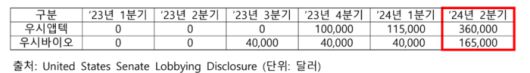 우시앱텍 및 우시바이오로직스 로비 금액 급증 |