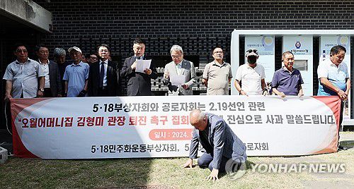 (광주=연합뉴스) 정다움 기자 = 특전사동지회와의 '대국민 공동선언' 행사를 강행해 광주 시민사회단체 등과 갈등을 빚은 5·18 부상자회, 공로자회가 공동선언 폐기를 앞두고 오월어머니집에 사죄했다.