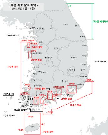 경남의 바다는 지난달 13일부터 급상승하기 시작해 30도까지 올랐다. 지난달 19일부터 고수운 경보가 이어지고 있고, 아직도 28도 이상을 유지하는 해역이 있다.