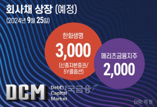 [한국금융신문 두경우 전문위원] 한화생명보험(대표이사 여승주)이 올해 두번째로 신종자본증권을 발행한다. 메리츠금융지주(대표이사 김용범)도 회사채 2,000억원 발행을 공시하고 수요예측에 나선다.