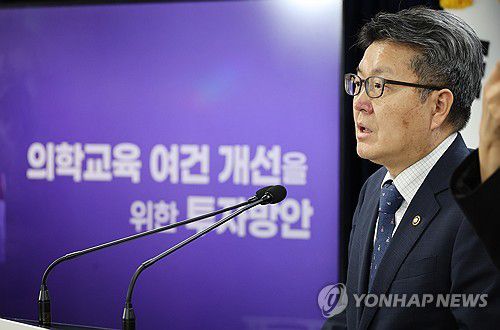 (서울=연합뉴스) 서혜림 기자 = 정부가 의대 증원에 맞춰 2030년까지 의학교육 개선에 5조원을 투자하기로 한 가운데 교육부는 10일 의대 증원 규모가 변화할 경우에도 교육의 질 저하가 없게 하겠다고 강조했다.