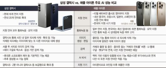 우선 삼성전자는 현재 16개 언어로 지원 중인 갤럭시AI의 기반을 연내 20개까지 늘리겠다고 밝힌 바 있다. 아울러 삼성전자는 갤럭시S·Z와 같은 플래그십(최상위기종) 라인업 외 갤럭시A 등 보급형 라인업에도 소프트웨어 업데이트를 통해 갤럭시AI를 활용할 수 있도록 하고 있다. 이 같은 전략을 바탕으로 연내 갤럭시AI 기능이 지원되는 스마트폰 대수를 2억대까지 늘릴 계획이다. 애플이 애플 인텔리전스에서 언급한 AI 기능은 삼성전자는 '서클 투 서치' '생성형 이미지 편집' '통화·음성 녹음'을 비롯해 폴더블폰 폼팩터(기기 형태)에 특화된 번역·카메라 촬영 기능 등으로 AI 기능 다변화를 꾀하는 중이다. 삼성 갤럭시의 자체 음성비서인 '빅스비'에도 생성형 AI 기능을 접목할 방침이다.