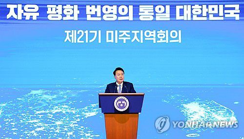 윤 대통령은 서울 그랜드워커힐호텔에서 열린 민주평통 해외지역회의 미주지역 자문위원과 통일 대화에서 "북한 정권은 아직도 무력에 의한 적화 통일의 꿈을 포기하지 않고 우리 사회의 분열을 조장하기 위해 자유주의의 가치 체계와 질서를 무너뜨리기 위해 가짜뉴스를 살포하고 거짓 선동을 일삼고 있다"며 이같이 밝혔다.
