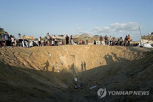 이스라엘군의 미사일 폭격으로 생긴 깊이10m 정도의 구덩이 [로이터연합뉴스. 재판매 및 DB 금지] |