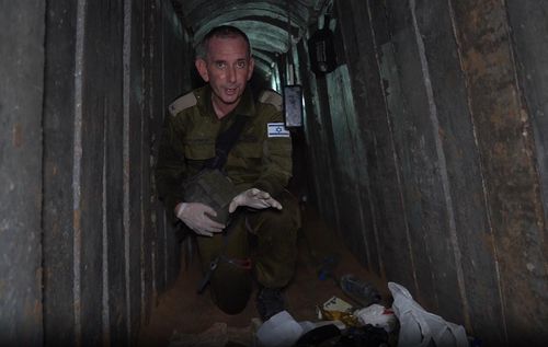 이날 공개된 3분 27초 분량의 영상을 보면 이스라엘군 수석대변인 다니엘 하가리 소장이 전투복에 방탄모, 소총 등을 갖춘 단독군장 차림으로 촬영팀과 함께 땅굴에 직접 들어간다.