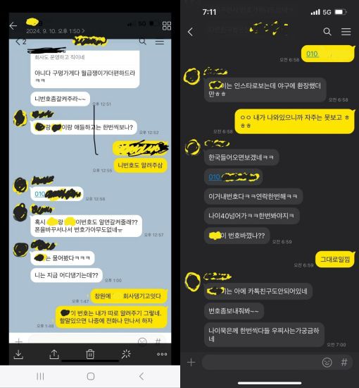 그는 "그 동창은 저의 전화번호를 알고 있을텐데, 다행히 전화번호를 알려고 접근한 동창은 저의 전화번호를 잃어버렸나보다. 친구들에게는 전화번호를 알려주지 말라고 전달했다. 그리고 전화번호를 알려달라는 동창과의 대화내용을 캡처 부탁했다"고 전하면서 친구들에게 전달받은 카톡 대화내용을 첨부했다.