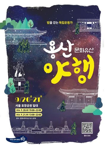 용산 문화유산 야행은 밤 10시까지 ▲야경(夜景: 공연) ▲야로(夜路: 교육) ▲야사(夜史: 체험) ▲야화(夜話: 전시) 4가지 주제로 다양한 볼거리 즐길 거리를 펼친다.