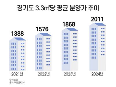 [이데일리 이윤화 기자] 올해 경기도 아파트 3.3㎡당 평균 분양가가 처음으로 2000만원을 넘어섰다. 1년 전 대비 140만원 가량 높아진 수준이다. 공사비 상승과 서울을 중심으로 시작된 아파트 가격 상승세가 경기권역까지 퍼진 것이다.