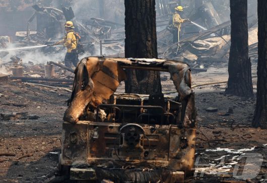 11일(현지시간) 미국 캘리포니아 라이트우드 인근 산림에서 발생한 화재로 인해 뼈대만 남은 자동차의 모습. 2024.09.11 ⓒ AFP=뉴스1 ⓒ News1 윤주현 기자 |