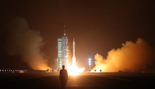 유인 우주선 선저우 18호를 실은 창정 2F 야오 로켓이 4월 25일(현지시각) 중국 간쑤성 주취안위성발사센터에서 발사되고 있다. 주취안(중국)/신화뉴시스 |