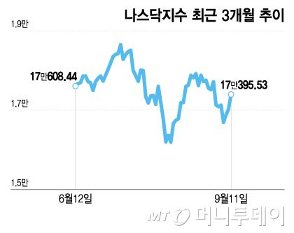 나스닥지수 최근 3개월 추이/그래픽=이지혜 |
