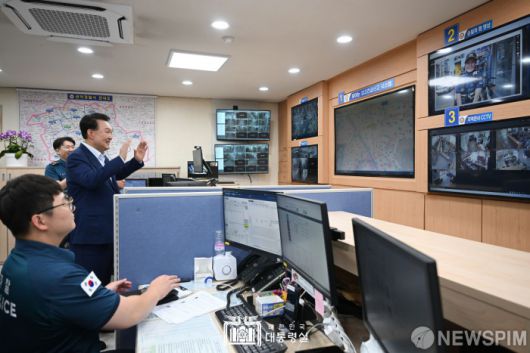 [서울=뉴스핌] 윤석열 대통령이 15일 서울 관악경찰서를 방문해 추석 명절 특별치안활동을 펼치고 있는 경찰관들을 격려하고 있다. [사진=대통령실] 2024.09.15 photo@newspim.com 저작권자(c) 글로벌리더의 지름길 종합뉴스통신사 뉴스핌(Newspim), 무단 전재-재배포 금지