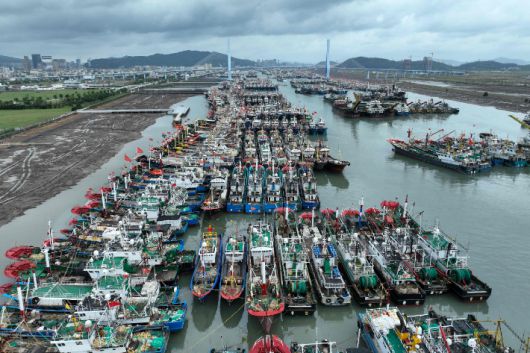 15일 태풍 버빙카가 접근함에 따라 중국 저장성 저우산항으로 배들이 피해 있는 모습. 연합뉴스 |