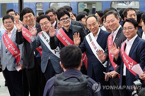 추석 귀성 인사하는 한동훈 대표와 국민의힘 위원들 |