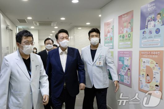 (서울=뉴스1) 박지혜 기자 = 윤석열 대통령이 18일 서울 성북구 우리아이들병원을 찾아 의료진과 병동을 둘러보고 있다. (대통령실 제공) 2024.9.18/뉴스1pjh2580@news1.krCopyright ⓒ 뉴스1. All rights reserved. 무단 전재 및 재배포, AI학습 이용 금지.