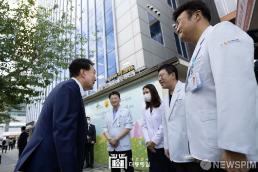 [서울=뉴스핌] 윤석열 대통령이 18일 서울 성북구 우리아이들병원을 방문해 추석 연휴 기간 진료 유지에 차질이 없는지 현장을 살피고 묵묵히 의료현장을 지키는 의료진의 노고를 격려하고 있다. [사진=대통령실] 2024.09.18 photo@newspim.com 저작권자(c) 글로벌리더의 지름길 종합뉴스통신사 뉴스핌(Newspim), 무단 전재-재배포 금지