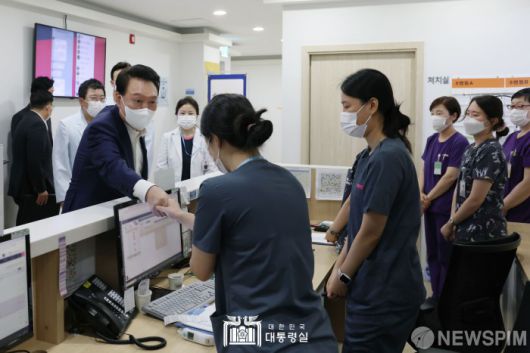 [서울=뉴스핌] 윤석열 대통령이 18일 서울 성북구 우리아이들병원을 방문해 추석 연휴 기간 진료 유지에 차질이 없는지 현장을 살피고 묵묵히 의료현장을 지키는 의료진의 노고를 격려하고 있다. [사진=대통령실] 2024.09.18 photo@newspim.com 저작권자(c) 글로벌리더의 지름길 종합뉴스통신사 뉴스핌(Newspim), 무단 전재-재배포 금지