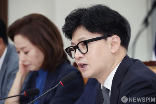 [서울=뉴스핌] 이형석 기자 = 한동훈 국민의힘 대표가 19일 오전 서울 여의도 국회에서 열린 최고위원회의에서 모두 발언을 하고 있다. 2024.09.19 leehs@newspim.com