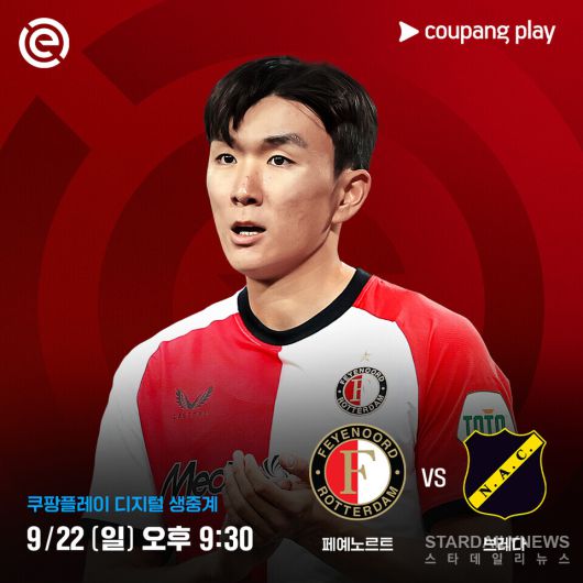 쿠팡플레이는 오는 9월 22일(일) 오후 9시 30분, 페예노르트와 NAC 브레다의 리그 6라운드 경기를 시작으로 국내팬들에게 2024-2025 시즌 페예노르트의 모든 경기를 선보인다.