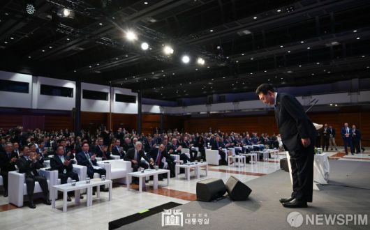 [서울=뉴스핌] 윤석열 대통령이 20일(현지시간) 프라하 한 호텔에서 열린 한-체코 비즈니스포럼에서 인사를 하고 있다.[사진=대통령실] 2024.09.21 photo@newspim.com 저작권자(c) 글로벌리더의 지름길 종합뉴스통신사 뉴스핌(Newspim), 무단 전재-재배포 금지
