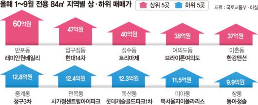 '60억원(반포동 래미안원베일리) vs 9억9000만원(창동 동아청솔)'