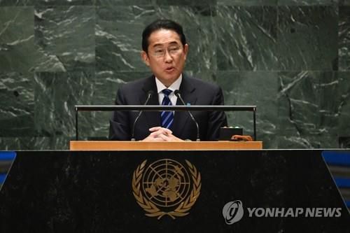 유엔본부서 연설하는 日기시다 |