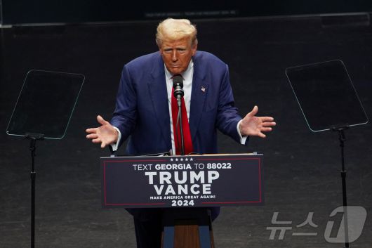 미 대선 공화당 후보인 도널드 트럼프 전 대통령이 24일(현지시간) 조지아주 사바나의 조니 머서 시빅 센터에서 선거 캠페인 연설을 하고 있다, ⓒ 로이터=뉴스1 ⓒ News1 류정민 특파원 |