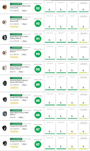 두 제품은 컨슈머리포트 평가에서 총점 92점을 받으며 91점을 받은 애플 워치 울트라2를 제치고 1위를 기록했다.