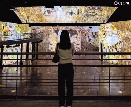 CJ ONE의 한 회원이 문화 이벤트에 참여, 빛의 시어터에서 전시를 관람하고 있다. [CJ올리브네트웍스 제공] |