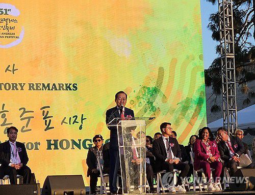 홍준표 대구시장은 "LA한인축제를 통해 대구 식품을 적극 홍보해 지역 식품기업들이 미국시장에 안착할 수 있도록 노력하겠다"고 말했다.
