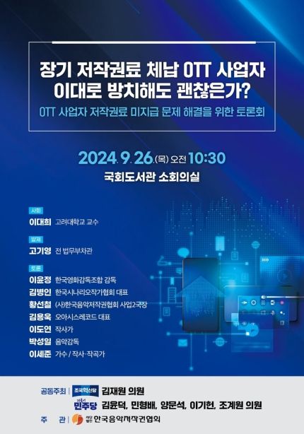 이러한 이유로 협상에 어려움을 겪고 있는 가운데, 한음저협은 이날 오전 여의도 국회도서관 소회의실에서 진행된 ‘장기 저작권료 체납 OTT 사업자, 이대로 방치해도 괜찮은가?’토론회를 열고 OTT 사업자가 저작권료를 장기간 미지급하고 있다고 주장했다.