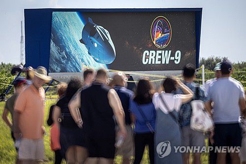 지난 21일(현지시간) 미국 플로리다 케네디 우주센터에 '크루-9' 임무 홍보 이미지가 게시된 모습 |