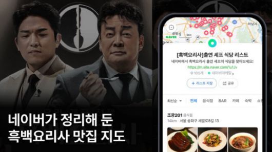 카카오맵도 지난 26일 흑백요리사 식당을 따로 모아 리스크를 공유했다. 앱 기준 검색창에 ‘흑백요리사’를 치면 관련 식당들이 나오며, ‘공지/이벤트’에서도 확인이 가능하다. 카카오맵의 컬러순 정렬 기능을 이용하면 ‘흑수저’, ‘백수저’ 셰프의 식당을 분리해서 볼 수 있다. 해당 리스트가 하루만에 즐겨찾기 구독자만 3800명을 넘어섰고, 6만 3000회에 육박하는 조회수를 기록하고 있다. 티맵 역시 흑백요리사 콘텐츠를 검토 중인 것으로 알려졌다.