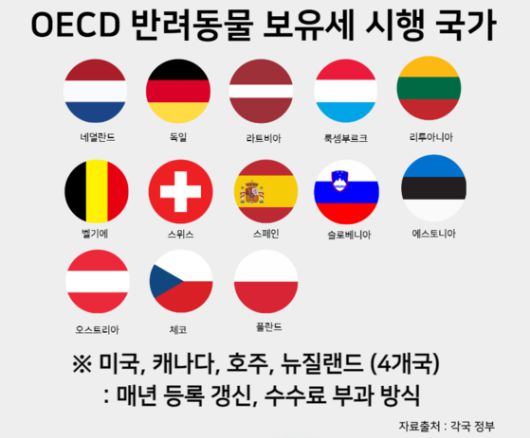 반려동물 보유세를 시행하거나 매년 등록비를 내는 나라는 OECD 전체 38개국 중 17개 국가였습니다.