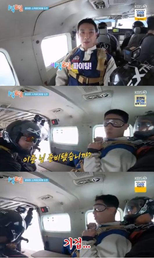 29일 방송된 KBS 2TV '1박 2일 시즌4'에서는 이준이 스카이다이빙에 도전하는 모습이 전파를 탔다.