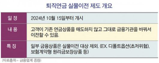 다만, 퇴직연금 실물이전 제도가 지각변동을 일으킬 지는 지켜볼 필요가 있다. 모든 상품이 이전 대상은 아니기 때문이다.