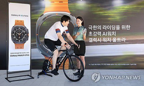 ▲ 삼성전자[005930]가 지난 28일 충북 충주에서 열린 '2024 산티니 충주 그란폰도' 사이클 대회에서 글로벌 자전거 브랜드 '트렉 바이시클'과 갤럭시 워치 울트라 체험 행사를 진행했다고 30일 밝혔다. 삼성전자는 참가자들이 갤럭시 워치 울트라의 영하 20도부터 영상 55도까지 견디는 내구성, 절전 모드 시 최대 100시간 사용할 수 있는 대용량 배터리, 위치를 정확히 감지하는 듀얼 GPS 등 기능을 체험했다고 전했다. (서울=연합뉴스)