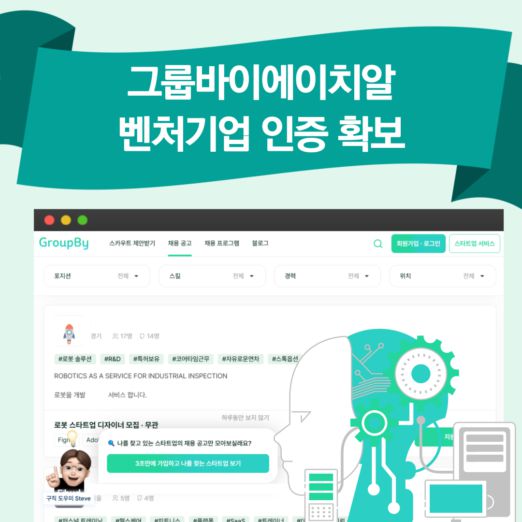 그룹바이에이치알은 지난 7월 프라이머사제, 한림대기술지주, 엔젤라운지로부터 Pre-A 투자를 유치해 이번 인증을 받았다. 현재까지 아웃바운드 채용 서비스 '스카우트'로 200건이 넘는 채용 성공 사례를 만들어 온 그룹바이는 향후 AI를 활용한 자동화 기술 개발에 박차를 가할 예정이다.